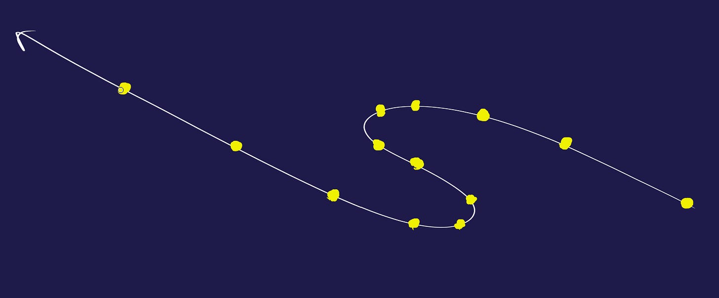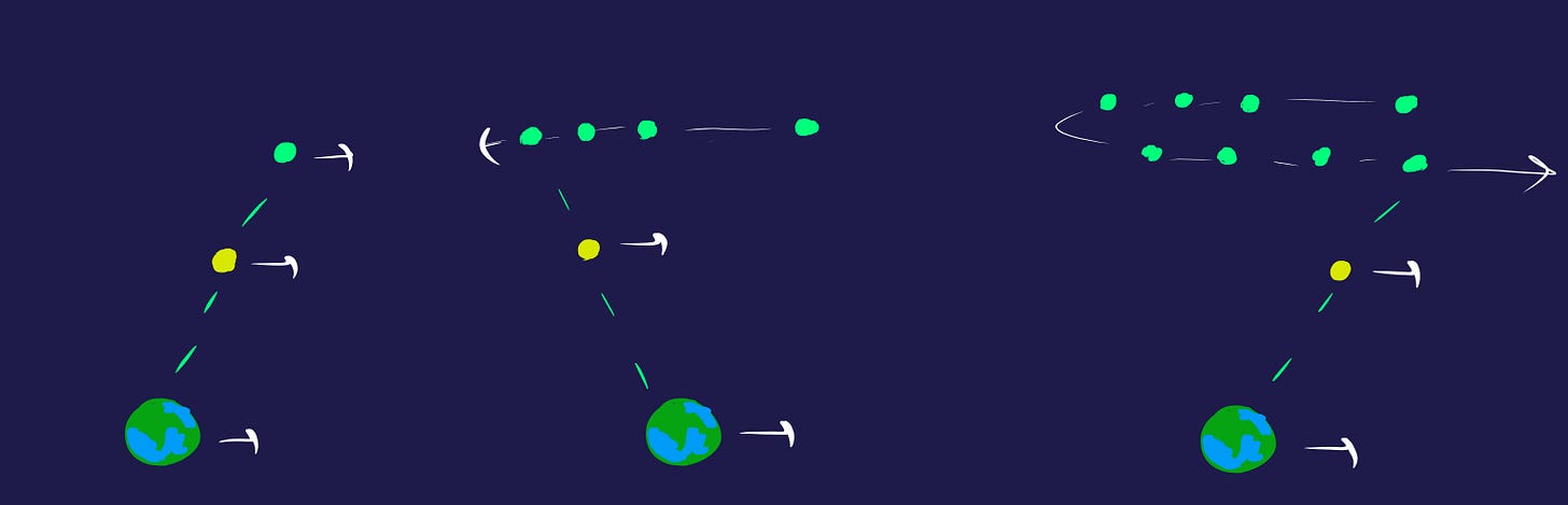 (in the image above, the yellow orb represents the other planet being observed from earth, and the green dots represent its projected motion as it appears from earth— apparent retrograde motion)